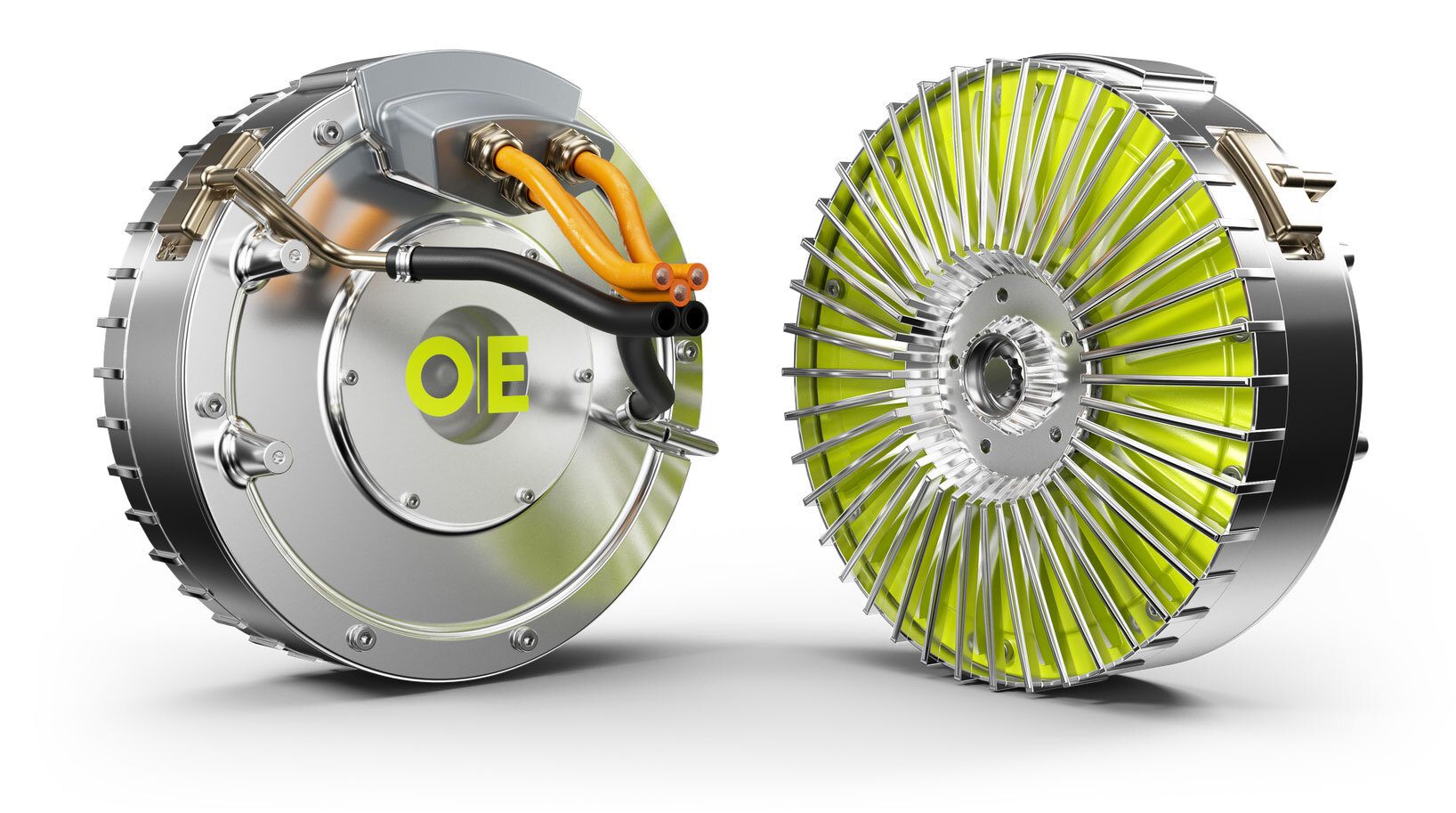 These modular in-wheel motors reduce vehicle weight and improve range by 20 percent. Photo courtesy Orbis Electric
